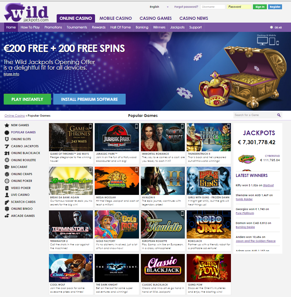 Wild Jackpots brings a fresh perspective to gaming Wild Jackpots entered the market at the beginning of 2025 as part of the GoWild Gaming Group. This innovative online casino is the go-to place for user-friendly and entertaining games, perfectly combined with promotions and services especially designed for the player's benefit. In addition, Wild Jackpots stands out through its adaptability, always applying the latest trends through its mobile and desktop websites, so that the best user experience is achieved. . Multi-platform winning opportunities Wild Jackpots online casino is available for play on 3 different platforms: mobile, Flash and downloaded casino. The desktop casino encompasses the widest game selection, offering users the possibility of trying out all the 600 games available at the casino. On the recently facelifted mobile website, an increasing selection of 70 titles awaits their players' lucky taps and swipes. . Constantly growing promotions palette . The A-team behind the Wild success . Everyone deserves the VIP treatment Wild Jackpots rolls out the red carpet for its members starting with day 1. The highly worthwhile and recently improved Loyalty Program rewards the players' every gaming effort with an enticing number of loyalty points, which help them advance towards Gold, Platinum and Diamond benefits faster. There are 500 points offered to users just for signing up, and that is only the beginning to an increasingly worthwhile Wild Jackpots adventure. The most loyal players are awarded with an exclusive membership in the Hall of Fame, which offers users the chance to get their very own, personal VIP Manager, while also entitling them to generous bonuses, customized wagering requirements and tickets to exclusive concerts and sporting events. |